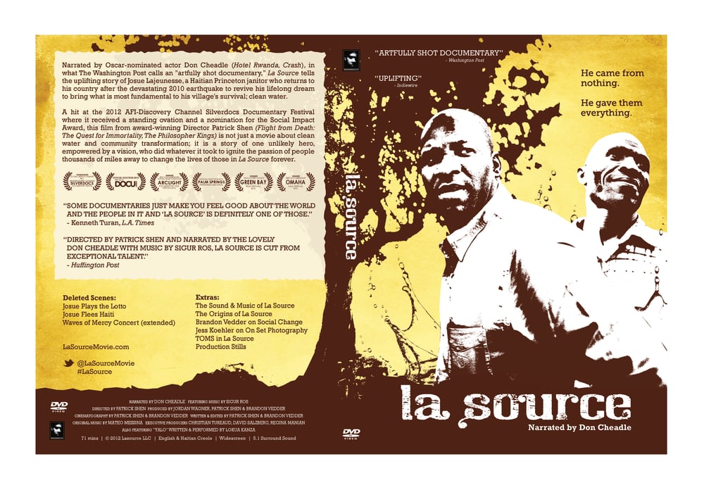 Includes deleted scenes and featurettes. Narrated by Oscar-nominated actor Don Cheadle (Hotel Rwanda, Crash), in what The Washington Post calls an "artfully shot documentary," La Source tells the uplifting story of Josue Lajuenesse, a Haitian Princeton janitor who returns to his country after the devastating 2010 earthquake to revive his lifelong dream to bring what is most fundamental to his village's survival; clean water.